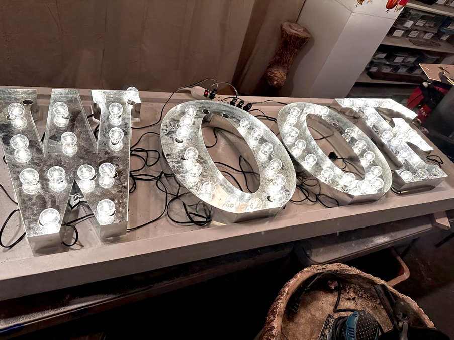 Furniture and prop sourcing, staging, custom storage and lighting complement the installation.