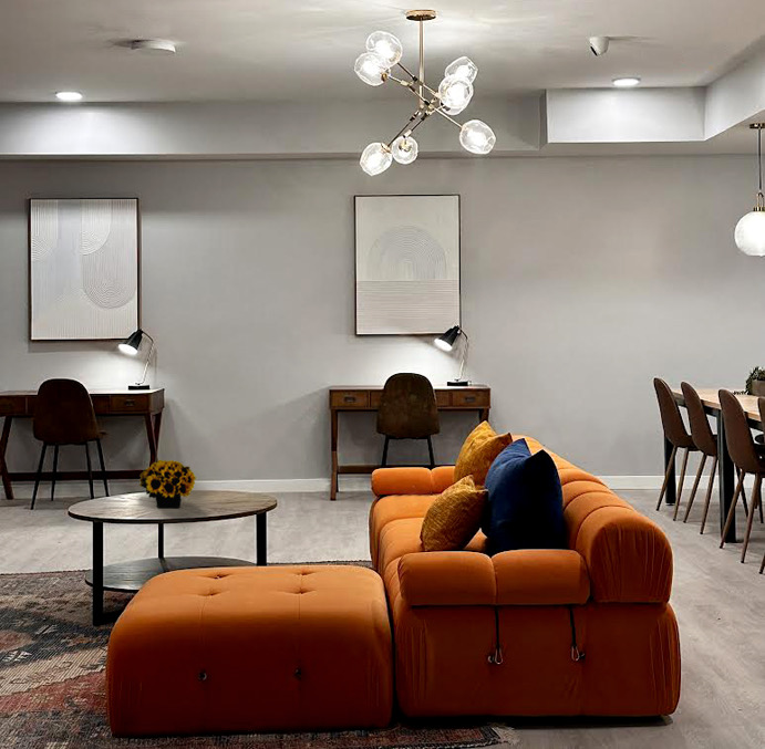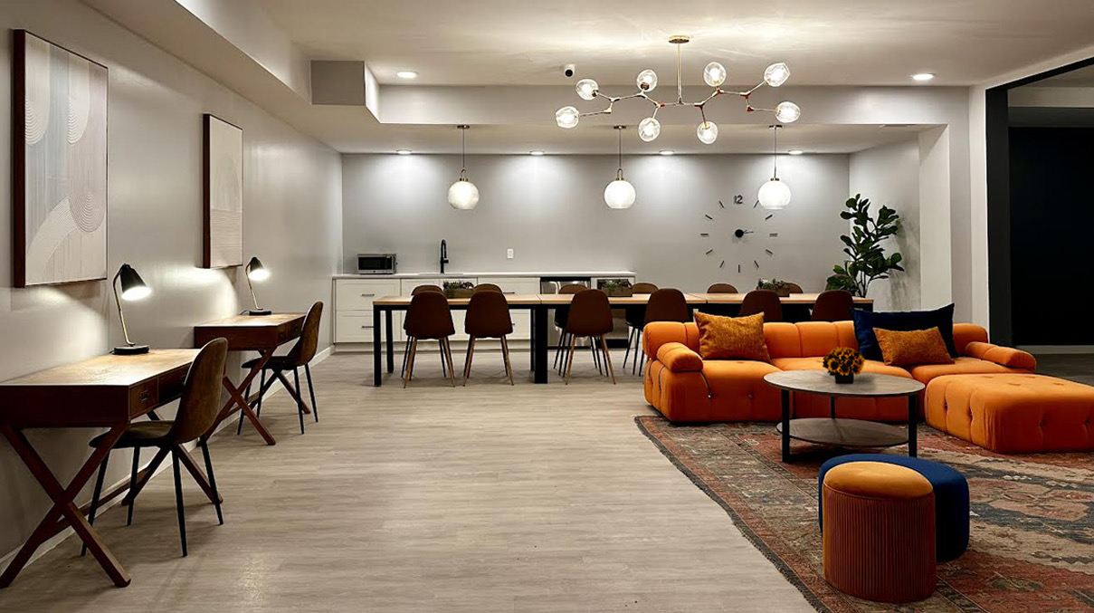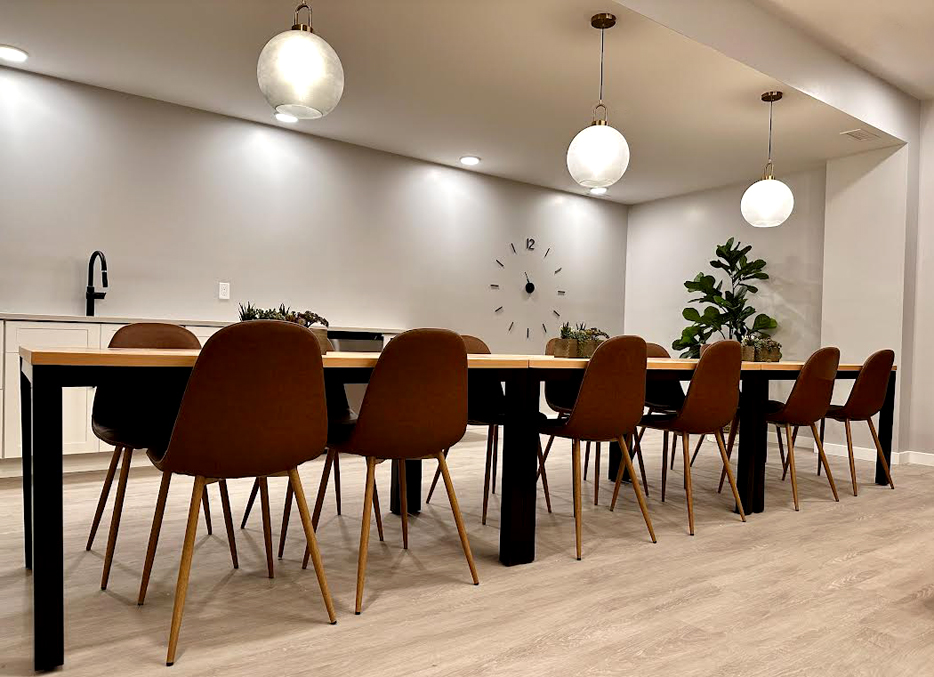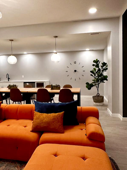 The large flexible space is designed to accomodate a myriad of activities, from work form home to large gatherings.