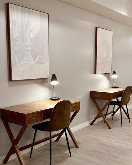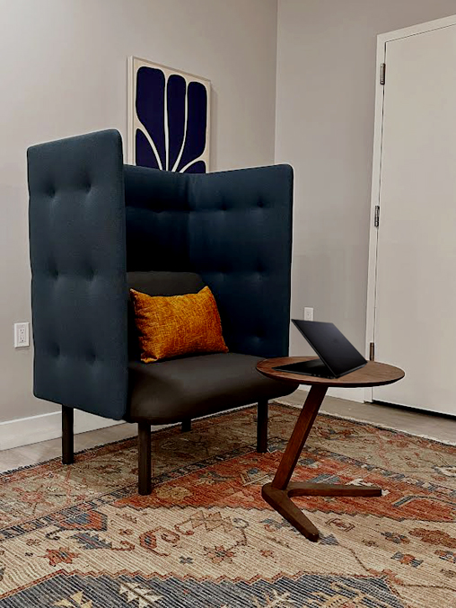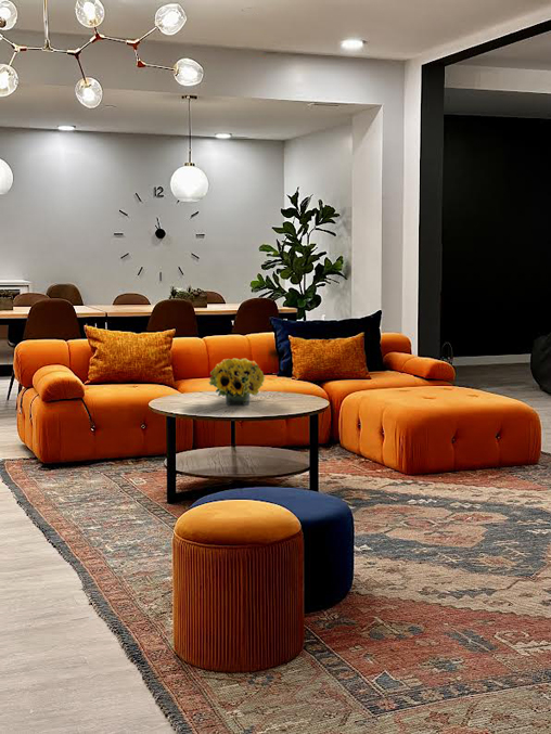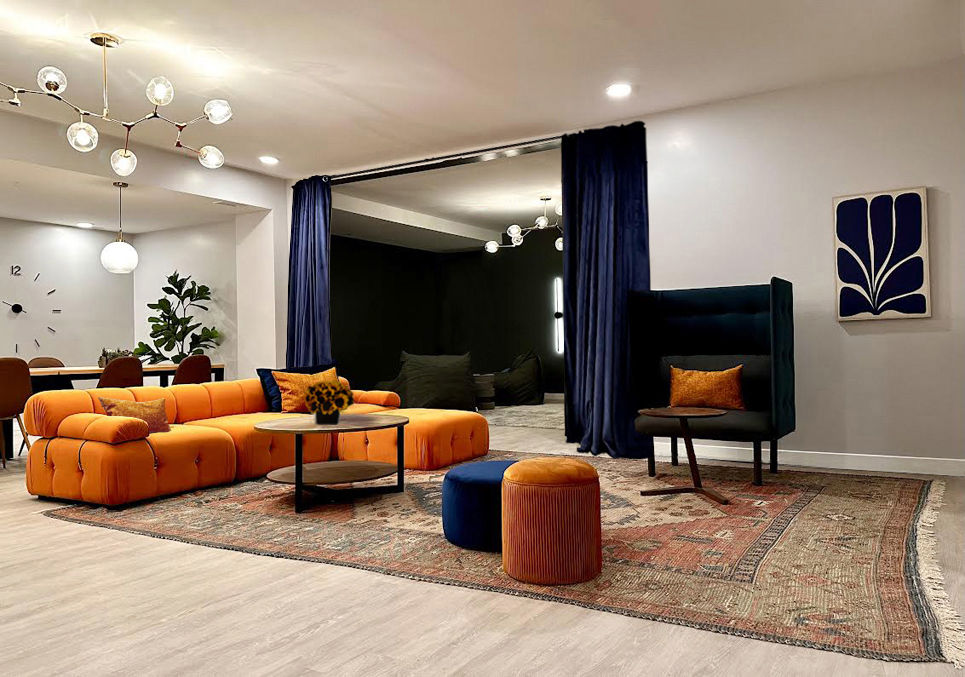 Furniture and prop sourcing, staging, custom artwork, custom soft goods and lighting advice complement the installation.