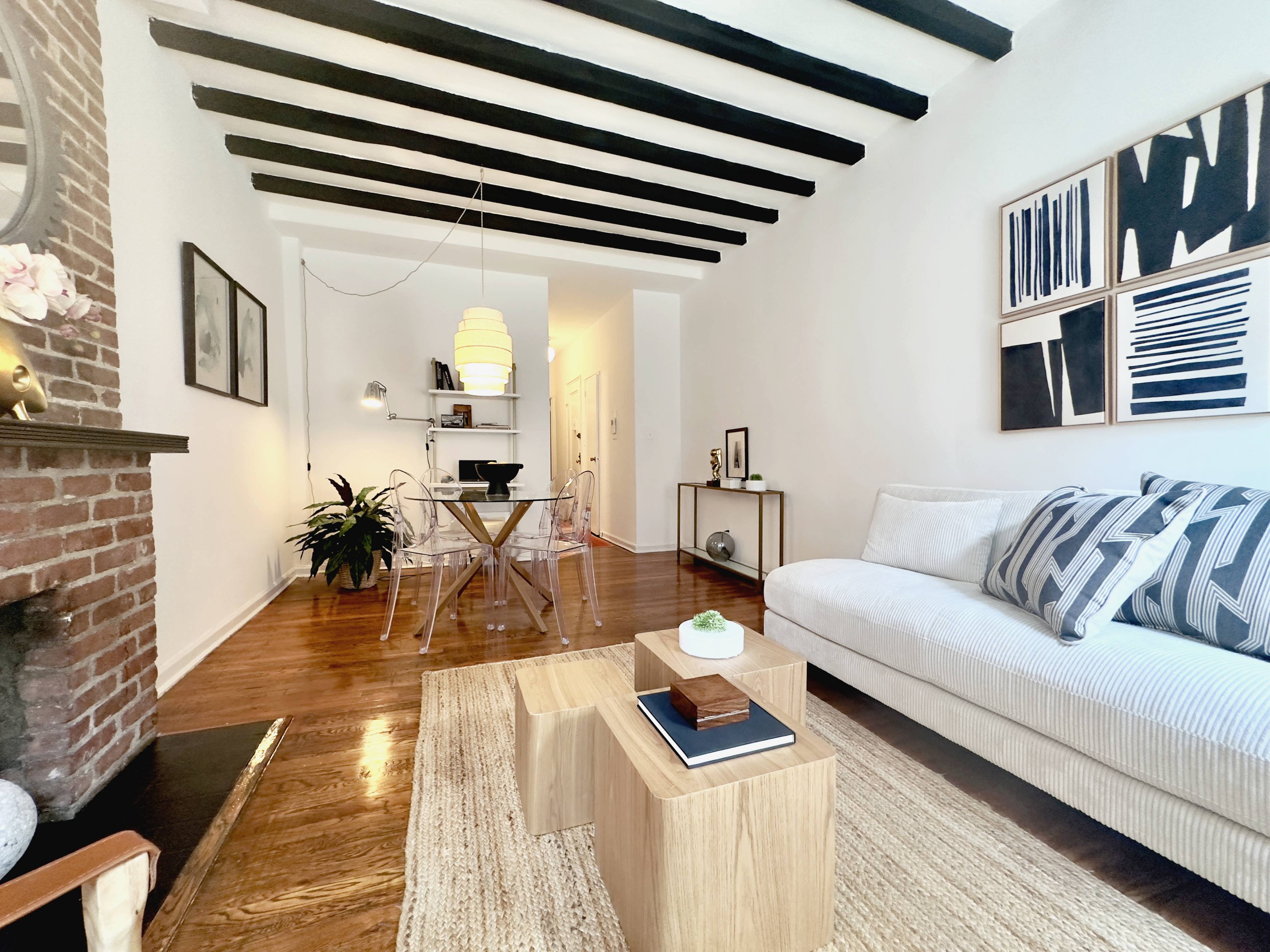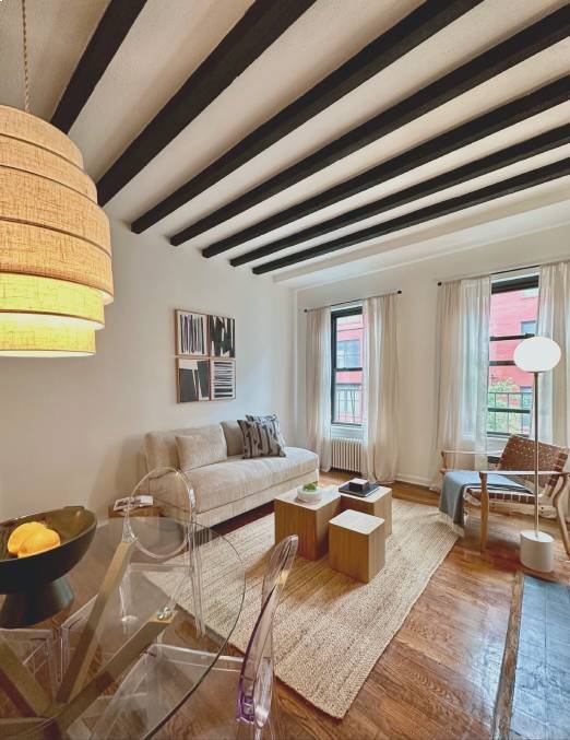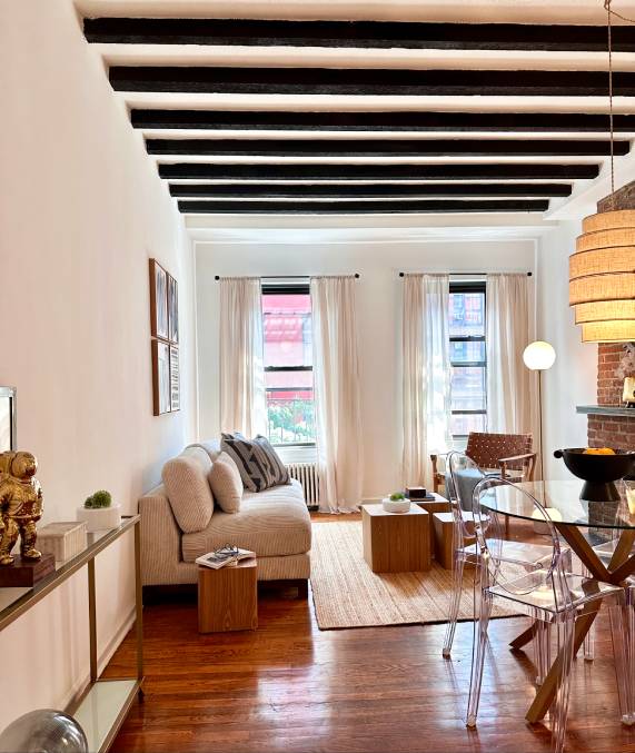 A classic railroad tenement apartment and its abundance of space, thanks to its high ceilings and the extra wide floor plan.