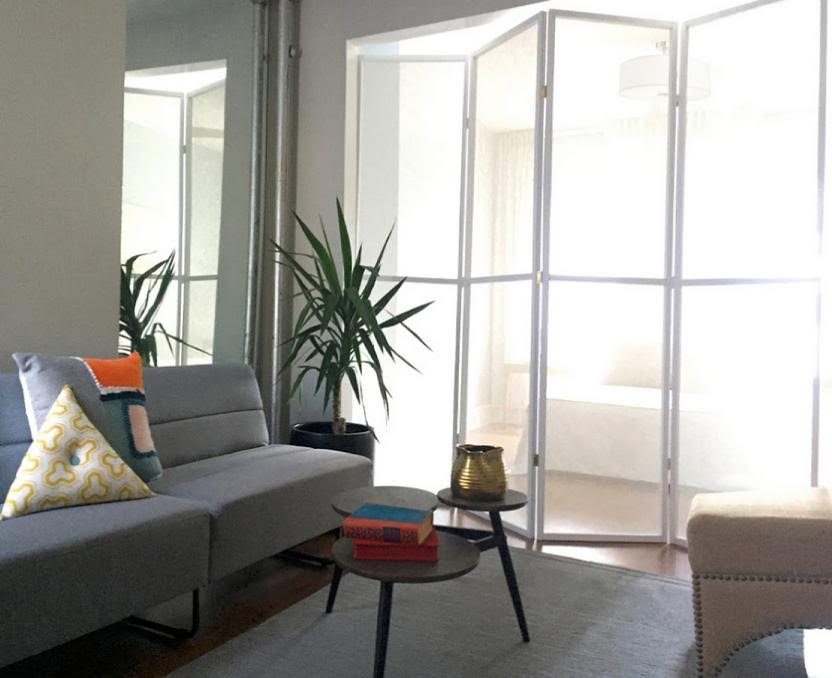With an specific buyer in mind, a staging scheme was created to provide separation between spaces and made the best out of its physical constraints.