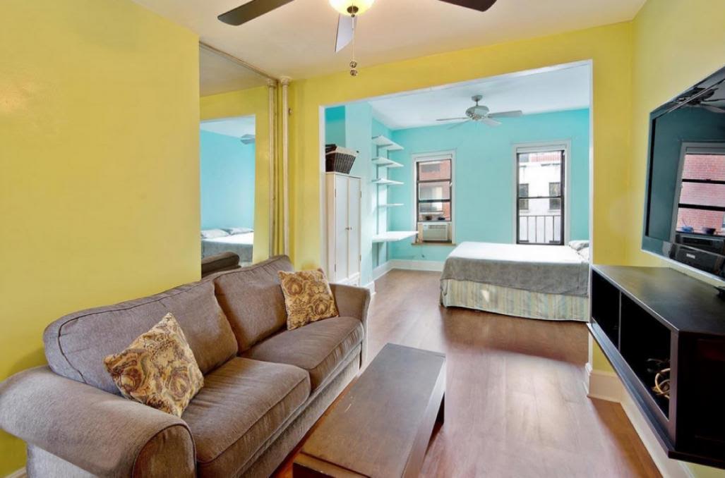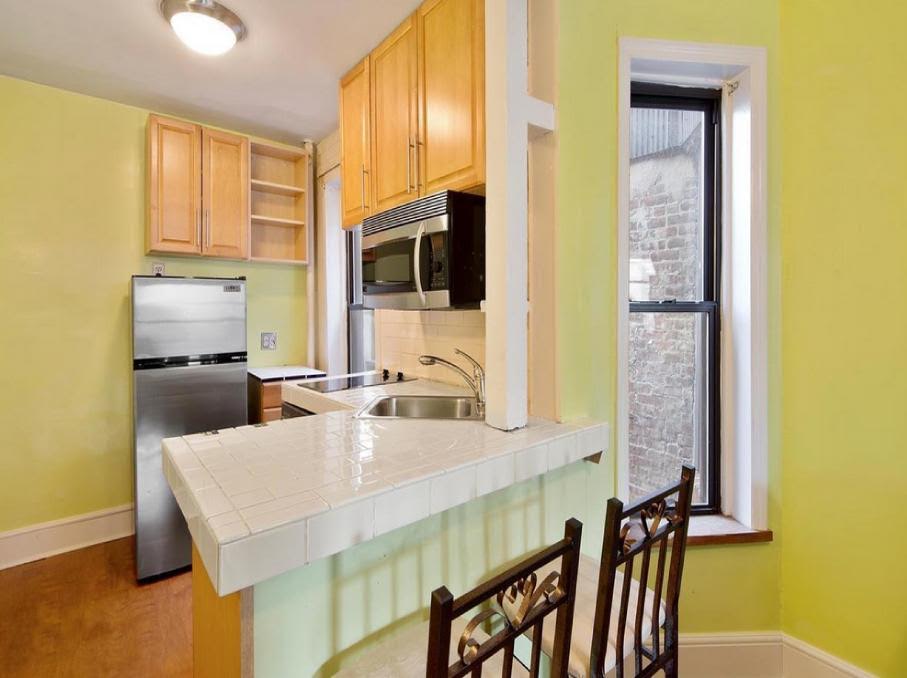 This traditional walk-up studio in Manhattan’s west side offered tons of natural light and a very large bathroom but very tight living spaces.