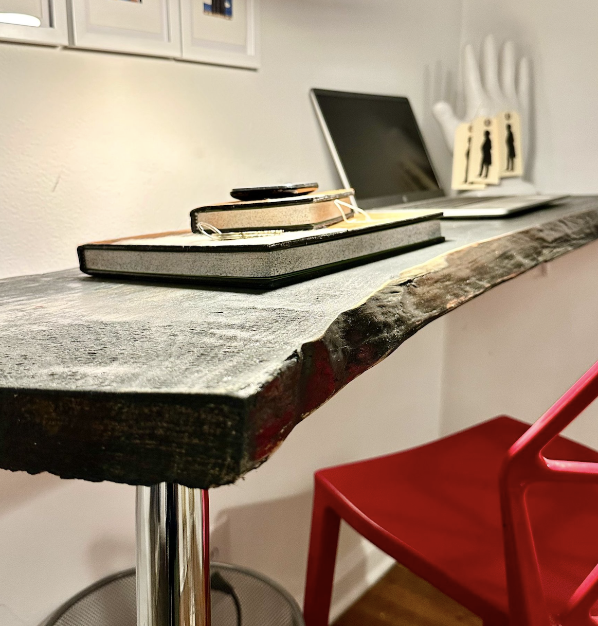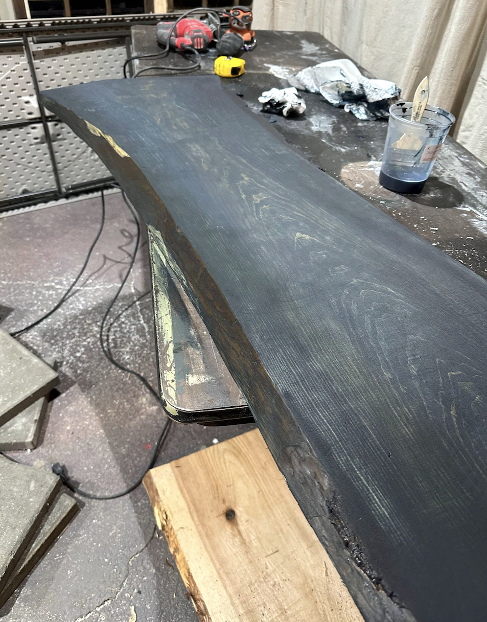 Furniture and prop sourcing, staging, painting services, floor resurfacing, custom furniture, custom soft goods, electric services and original artwork complement the installation.