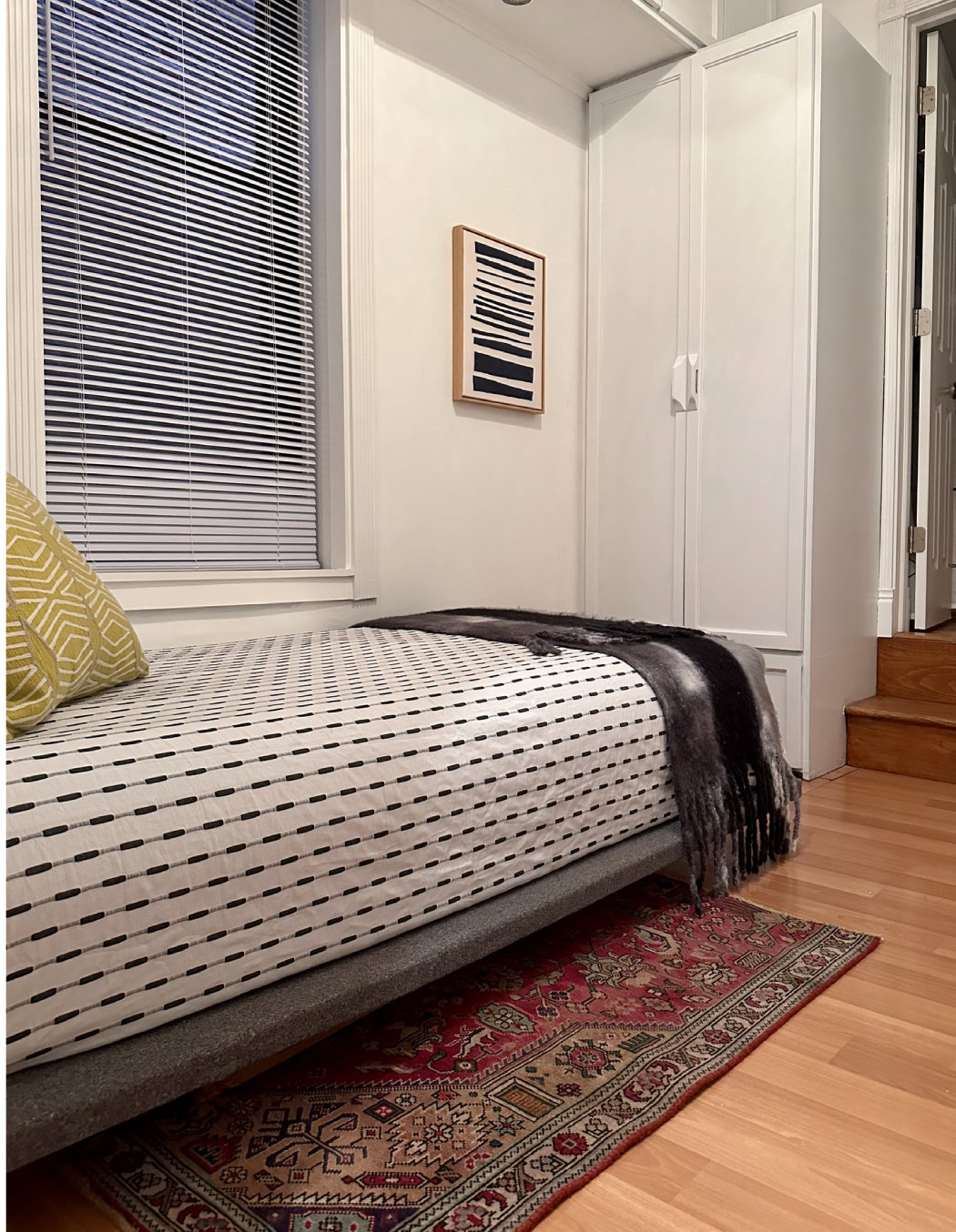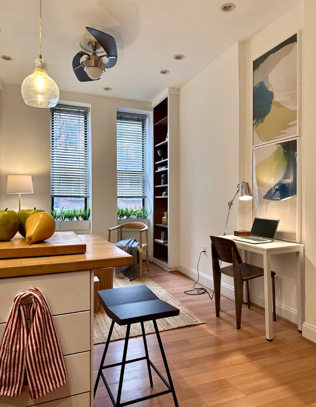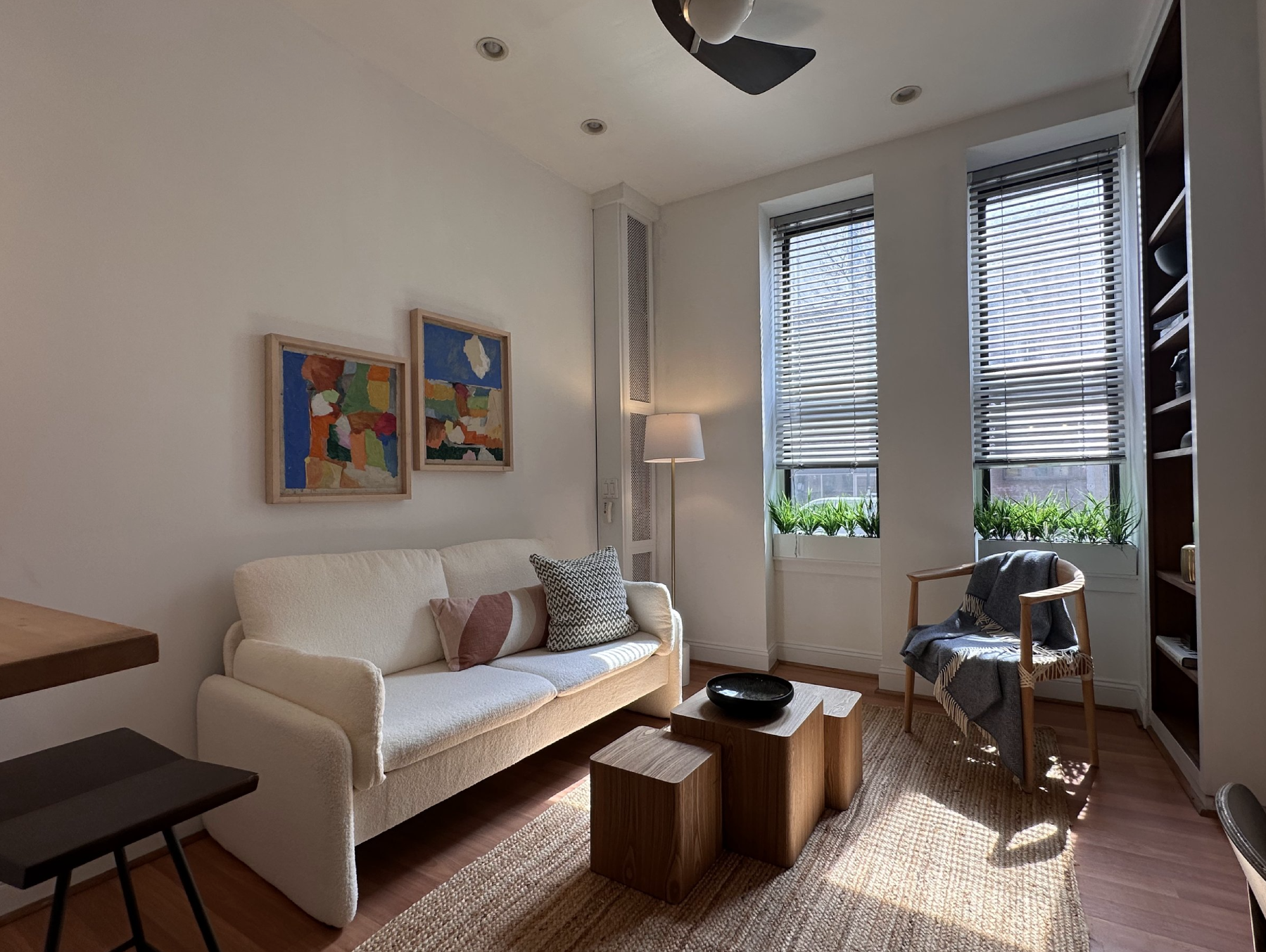 A simple studio apartment in an old beer factory at the heart of the theater district, boasts super tall ceilings and a great location.