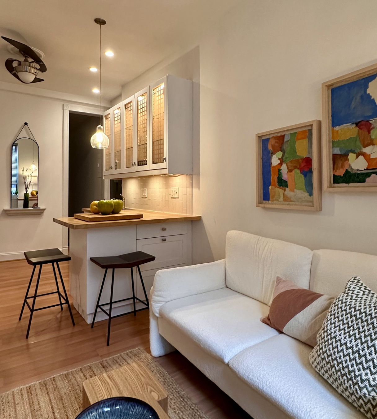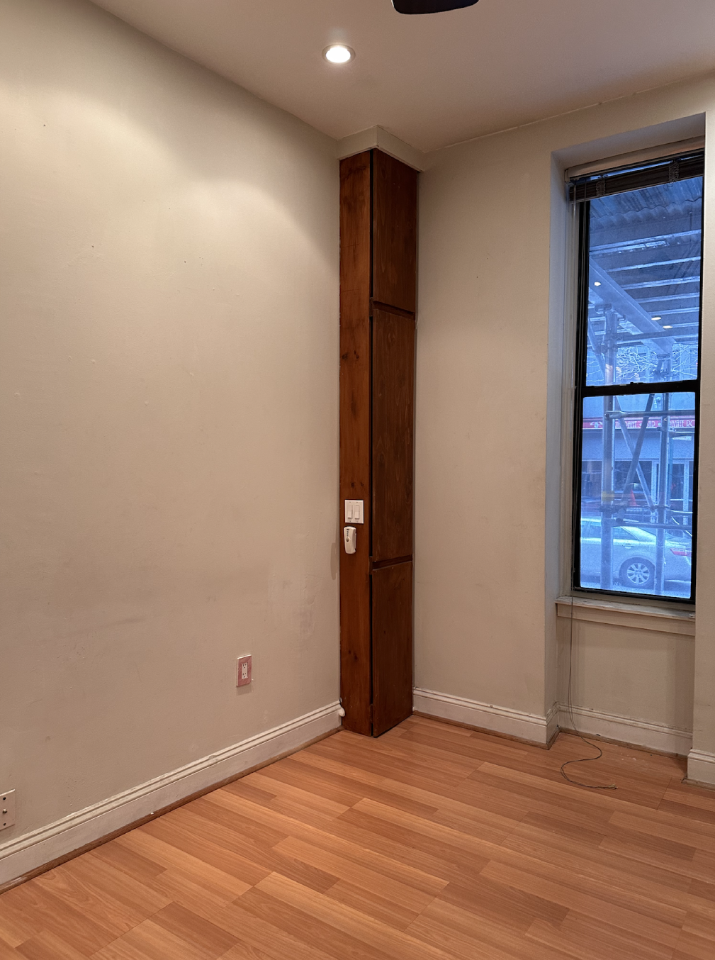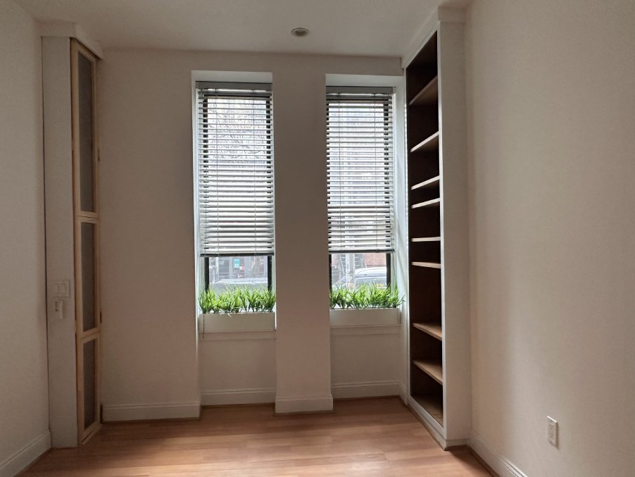 A simple studio apartment in an old beer factory at the heart of the theater district, boasts super tall ceilings and a great location.