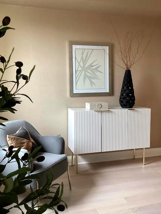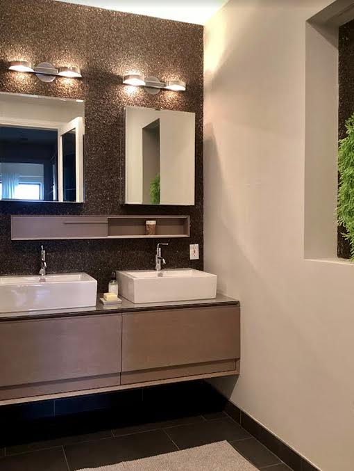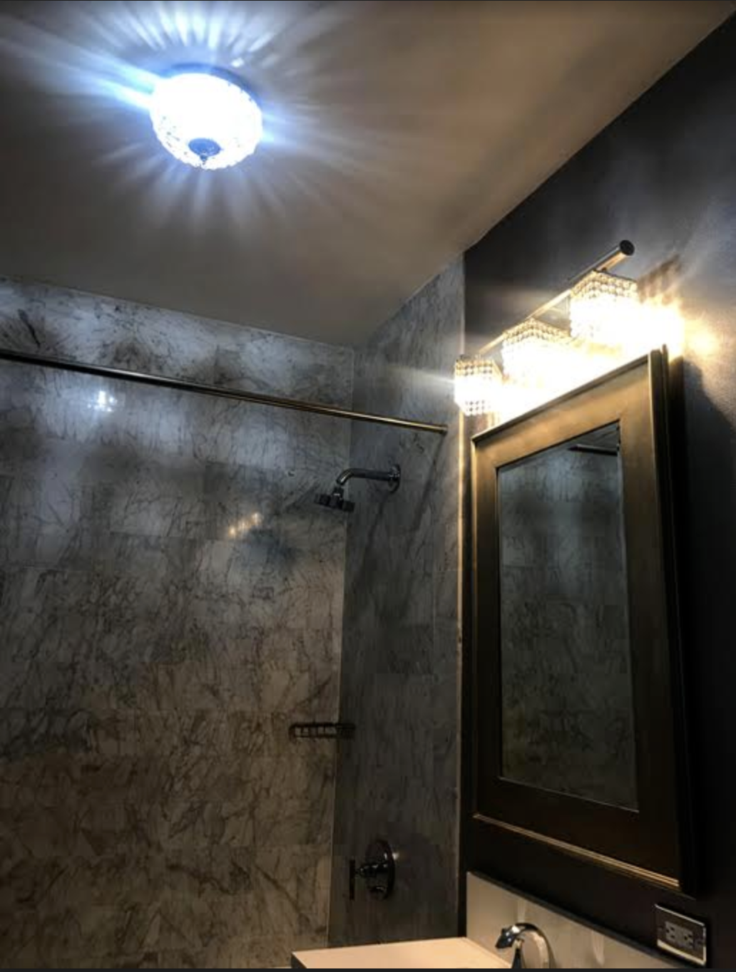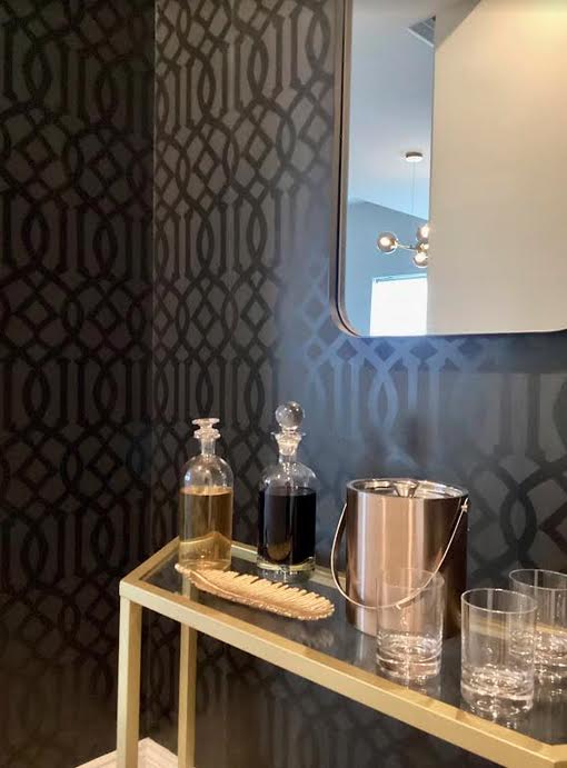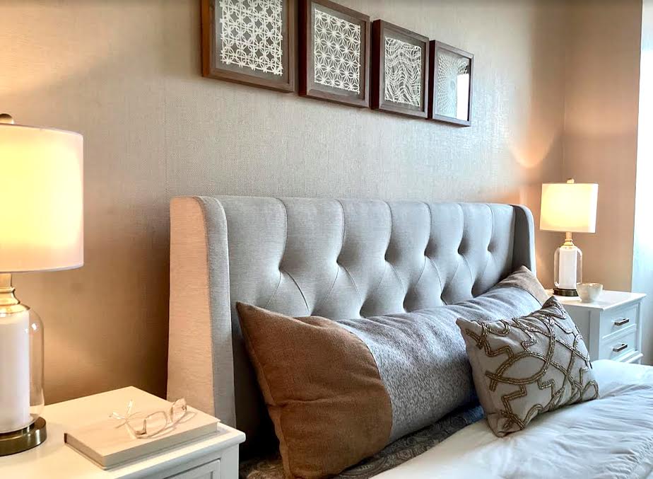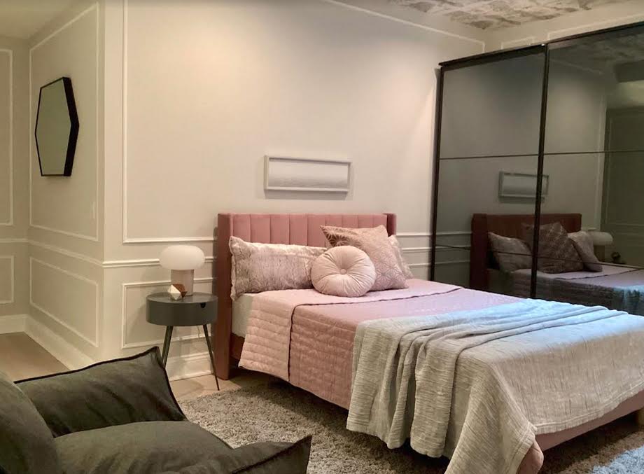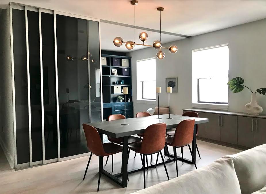 Furniture and prop sourcing, staging, painting services, custom soft goods, electric services, floor refinishing and original artwork complement the installation.